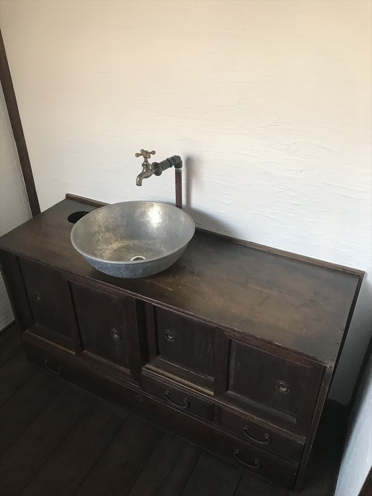 歴史ある場所を守りつつ来た人が時間を忘れるような心やする場所へ。材料は古材と再利用できるものを使い、できるだけ古民家の雰囲気を崩さないようにしました。