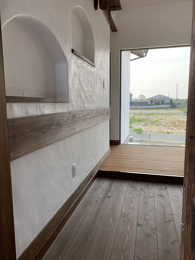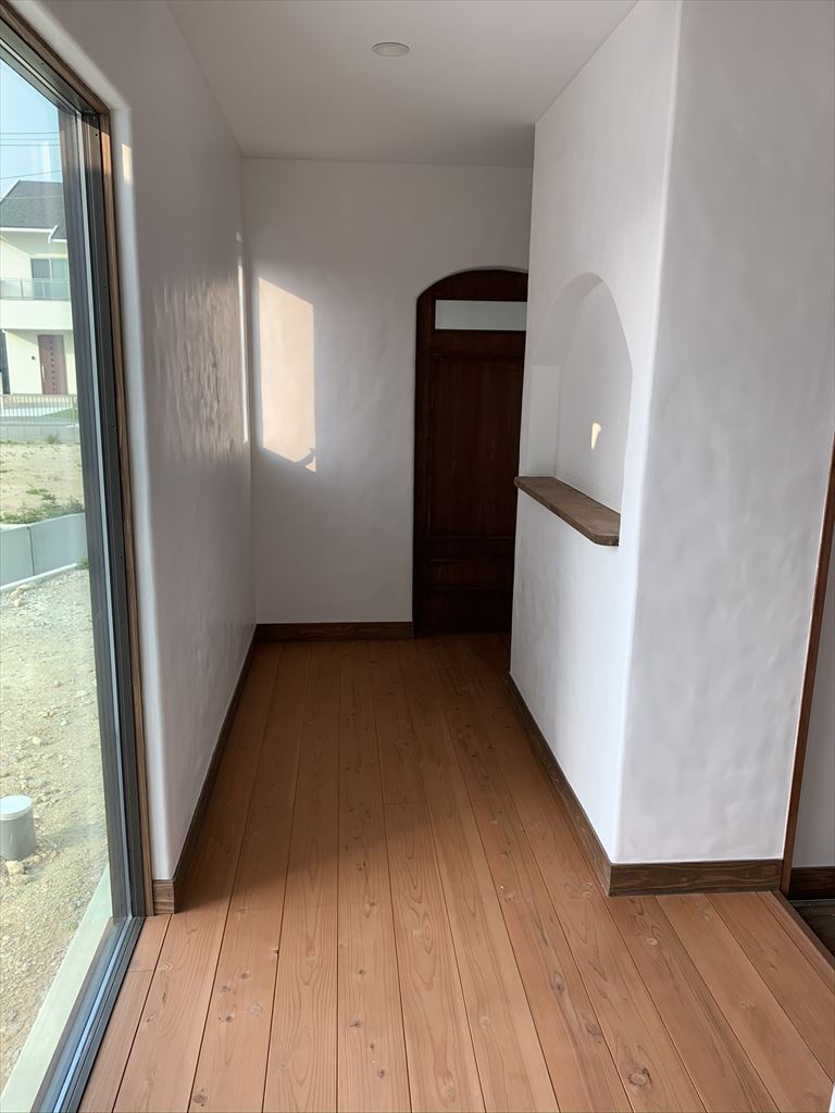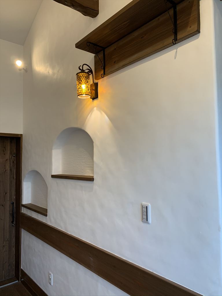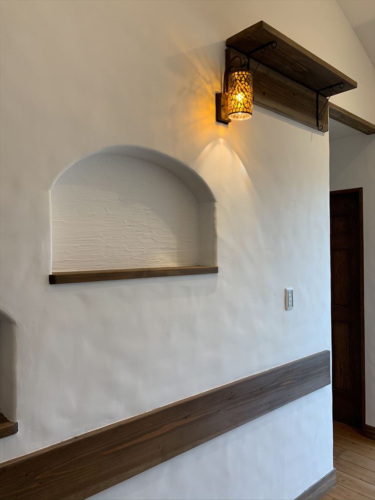 木をふんだんに使用し、大工が手刻みで仕上げました。大工のこだわりの仕様と、機能性と生クリームをぬったような漆喰壁仕上げ。