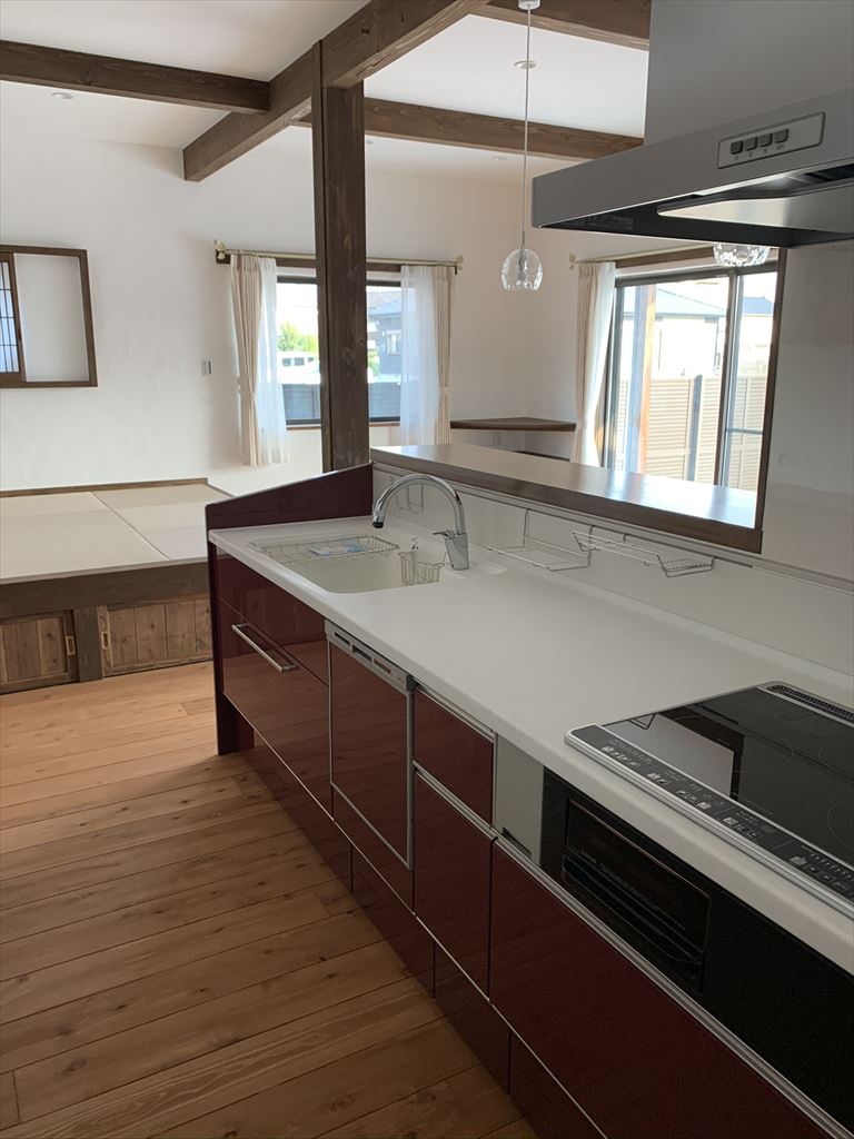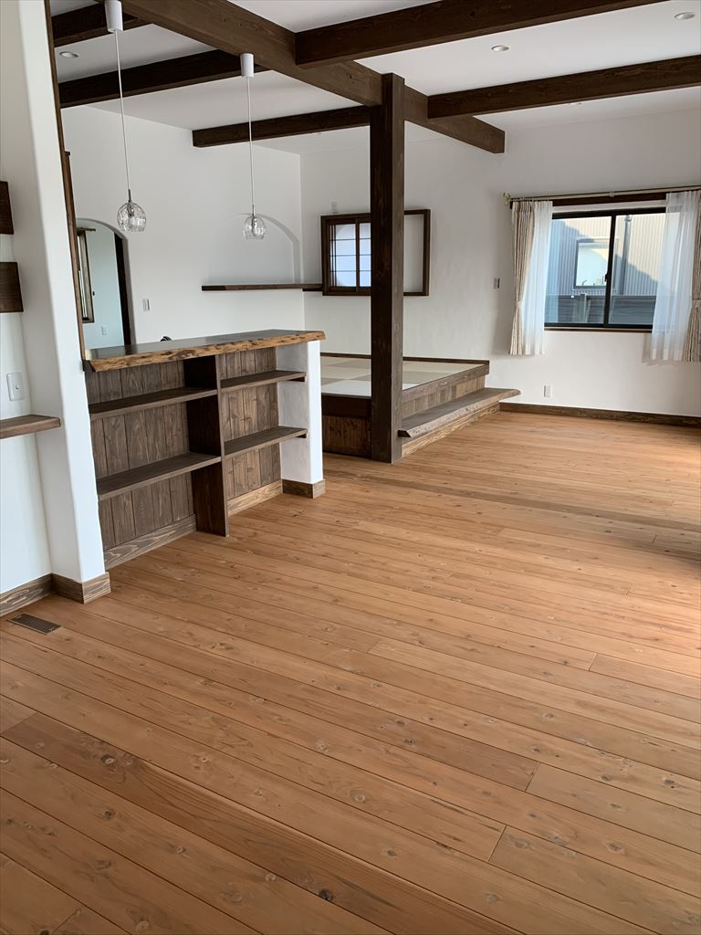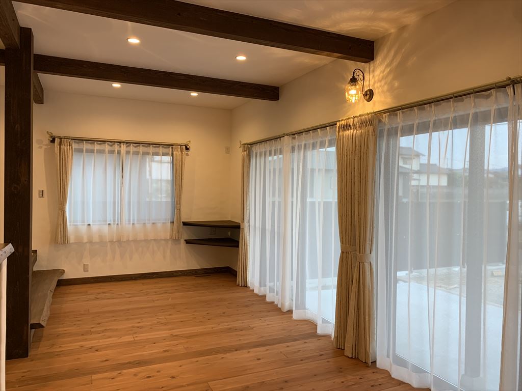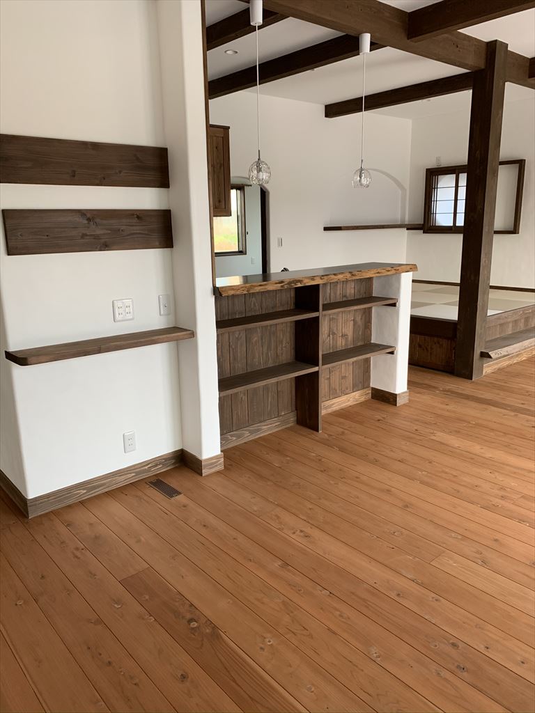 木をふんだんに使用し、大工が手刻みで仕上げました。大工のこだわりの仕様と、機能性と生クリームをぬったような漆喰壁仕上げ。